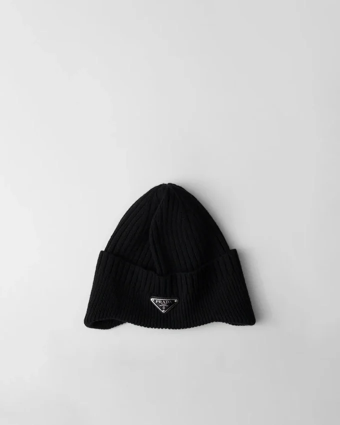 The Iconic Enameled Metal Triangle Logo Embellishes This Cozy Knit Beanie Made of Warm Wool.