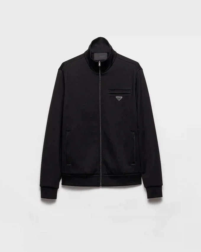 This Blouson Jacket Made of Technical Cotton Has a Sleek Silhouette with Sporty Style. The Garment, Defined by Its Boxy Cut and Stand-Up Collar, is Decorated with the Iconic Enameled Metal Triangle Logo.