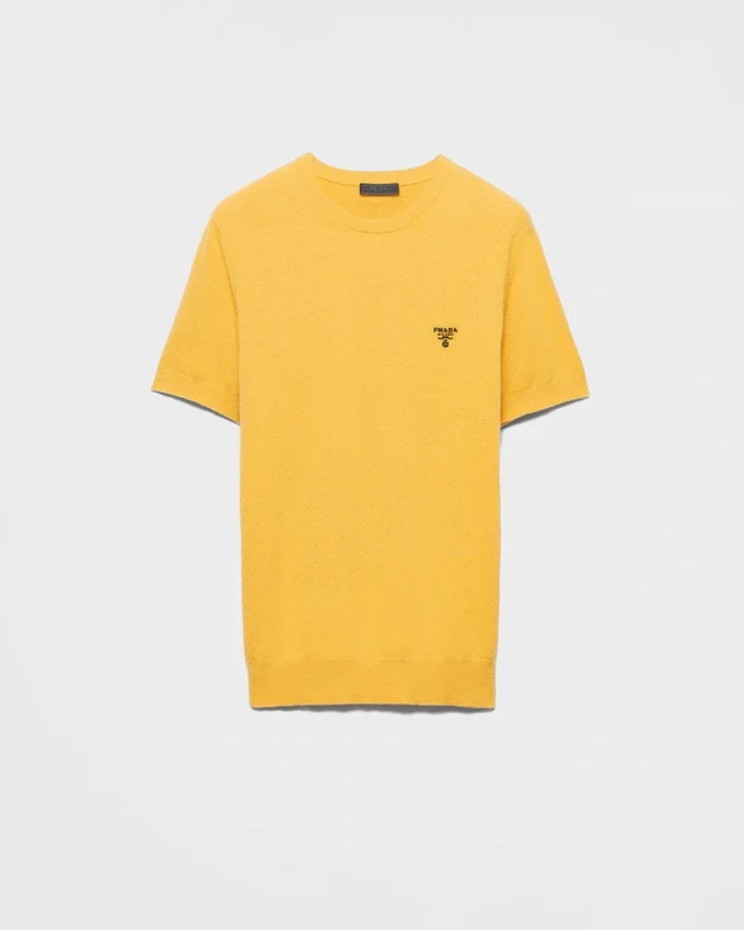 This Sleek and Refined Short-Sleeved Sweater is Made of Cotton with a Classic Silhouette Decorated with the Iconic Geometric Shape of the Triangle Logo.