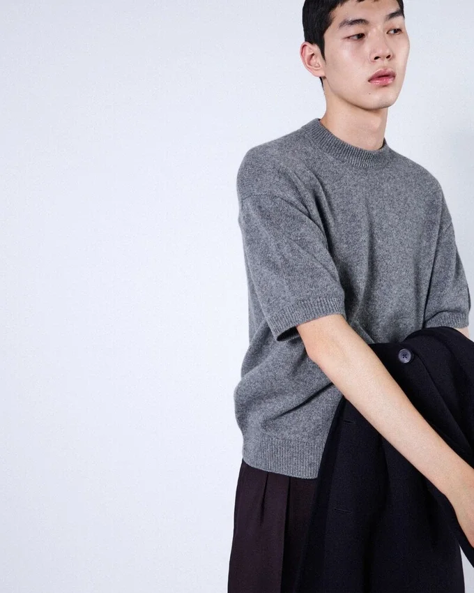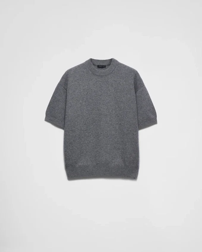 Classic Lines and Sleek Details Define This Short-Sleeved Sweater Made of Soft Regenerated Cashmere with Ribbed Knit Trim. The Tonal Triangle Logo Completes the Refined and Versatile Style.