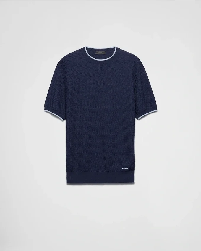 This Sleek and Refined Short-Sleeved Sweater in Silk and Cotton Has a Light Silhouette with Classic Lines and is Decorated with the Lettering Logo.