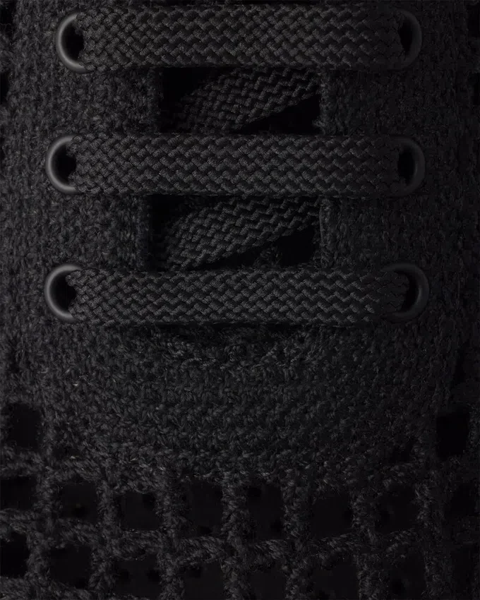 Crochet Artistry Brings a Fresh, Light Touch to the Sleek, Tapered Silhouette of the Collapse Sneakers. Updated for the Warmer Season, These Shoes Exude a Delicate and Contemporary Refinement.