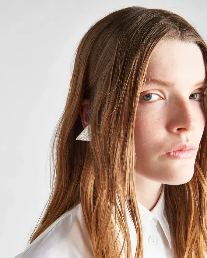 The Triangle Illuminated with Zircons Defines This Clip Earring and is Combined with the Refined Lettering Logo. The Iconic and Sleek Geometric Detail is the Protagonist of a Jewelry Line Made of 925 Sterling Silver.