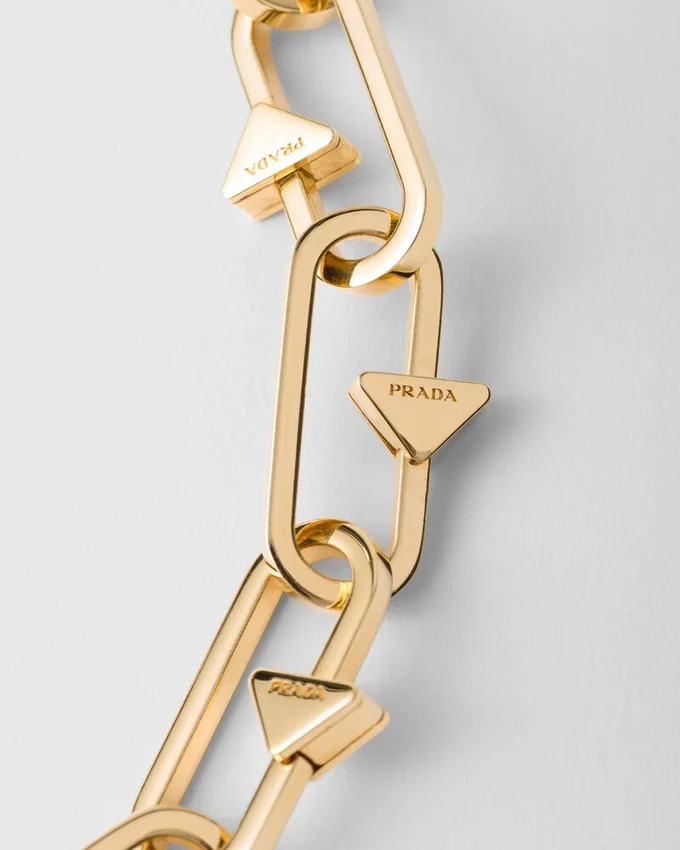 The Iconic Triangle, the Emblematic Hallmark of Prada Collections, is Presented in the Purity of Its Geometric Shape in This Metal Necklace Characterized by the Chain Design. A Harmonious Combination of Simple Shapes and Strong Lines Creates an Elegant, Contemporary Accessory.