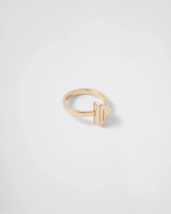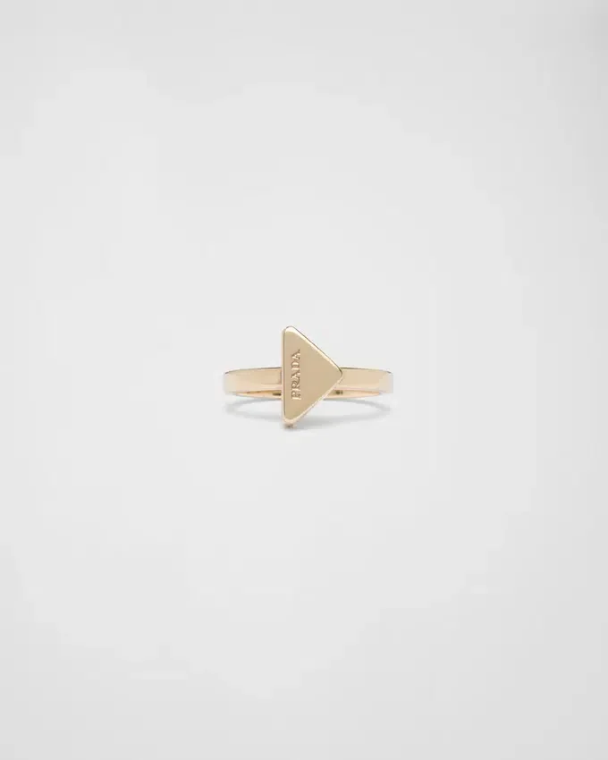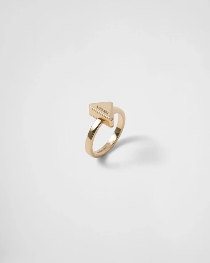 This Elegant and Contemporary Metal Ring Has Sleek, Clean Lines. Presented with a Dynamic and Conceptual Design, the Emblematic Prada Triangle Embellishes the Accessory with an Iconic and Distinctive Touch.