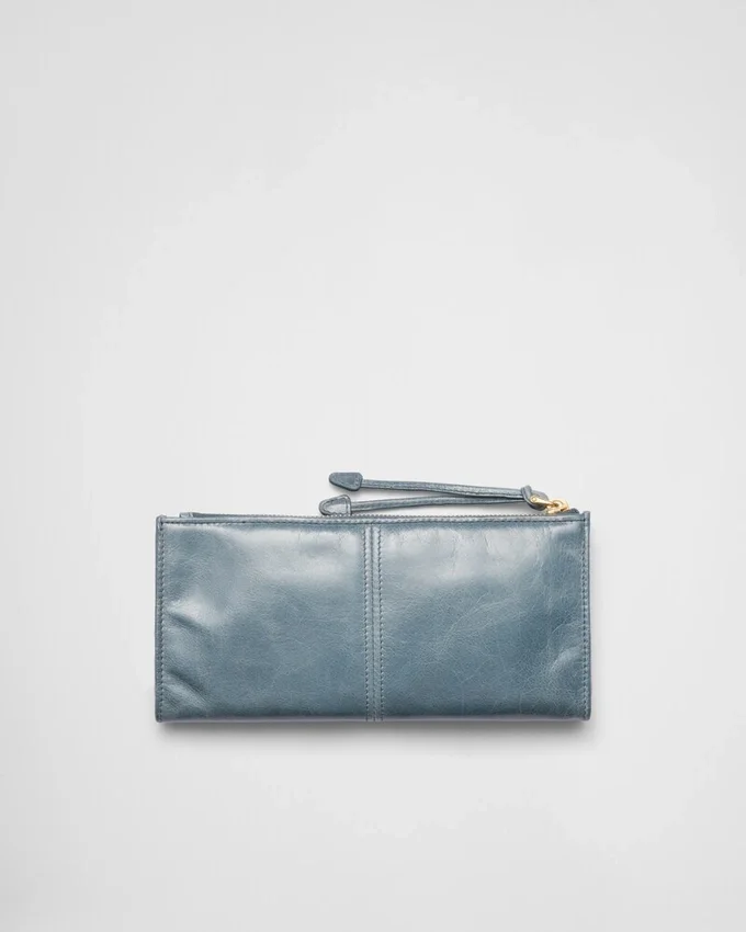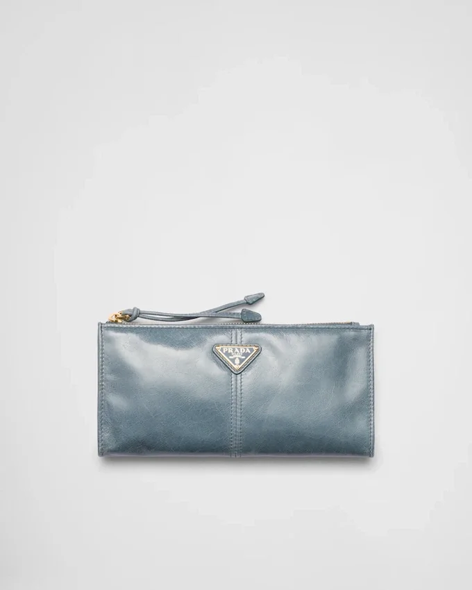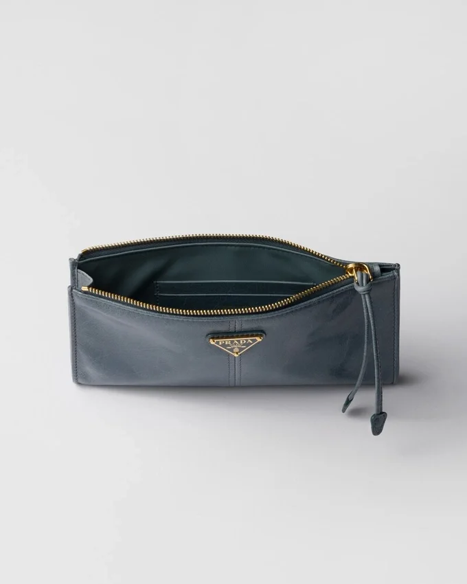 This Pouch Features a Sleek, Sophisticated Design Crafted from Soft Leather and Adorned with the Enamelled Metal Triangle Logo.