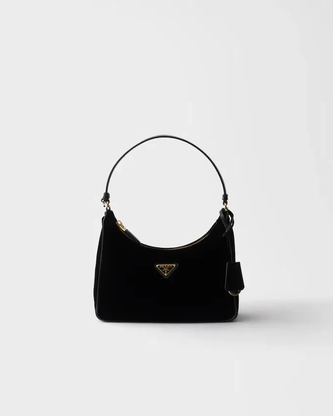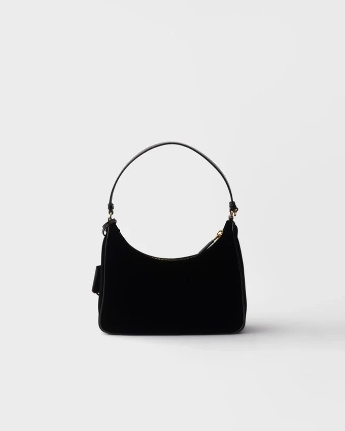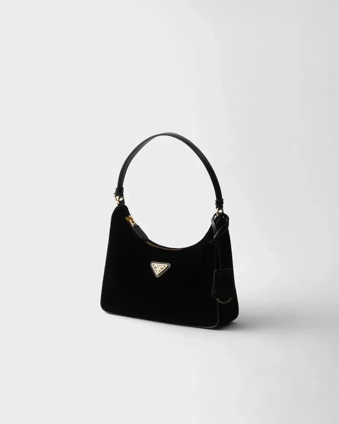The Prada Re-Edition 2005 Bag, Inspired by the Iconic Mini Hobo, is Reimagined in a Sophisticated Version Crafted from Soft Velvet with Saffiano Leather Details. The Design Embodies Prada’s Innovative Spirit and Artisanal Tradition with a Refined, Versatile, and Timeless Style.
