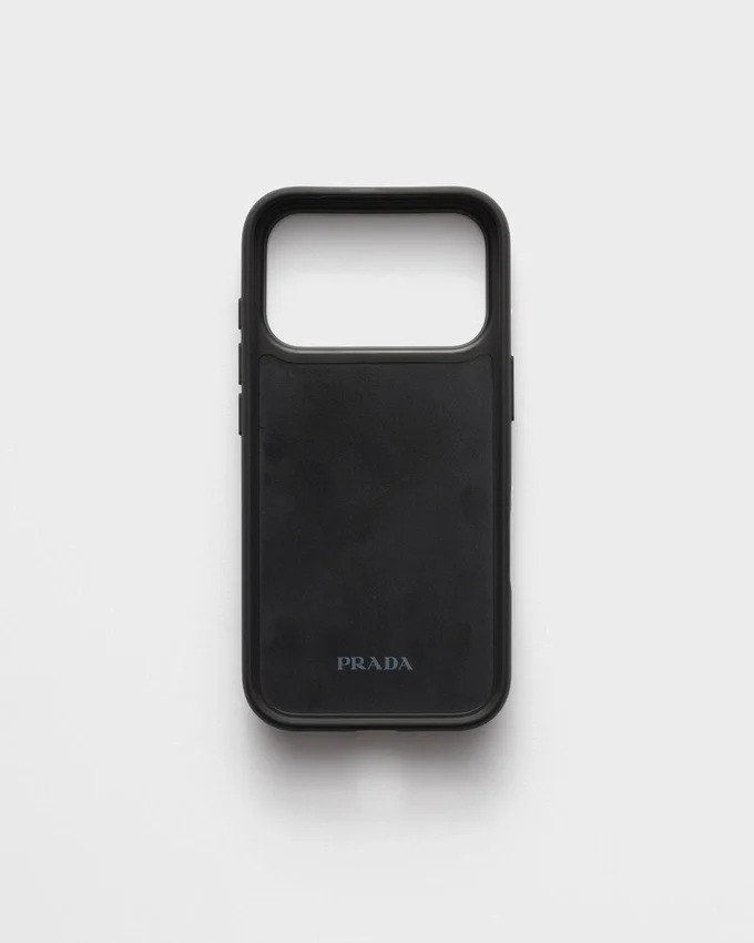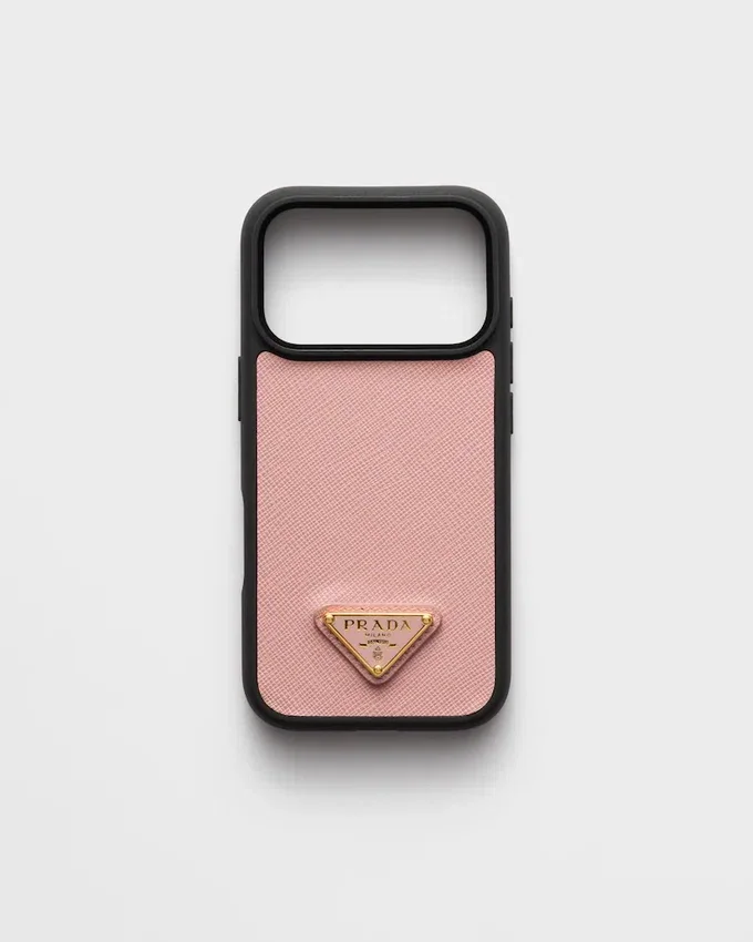 This Saffiano Leather Case for the Iphone 17 Pro Max Has a Sleek and Sophisticated Design Decorated with the Emblematic Enameled Metal Triangle Logo.