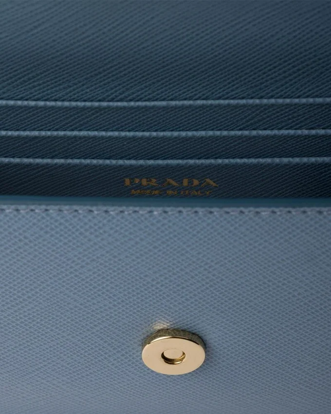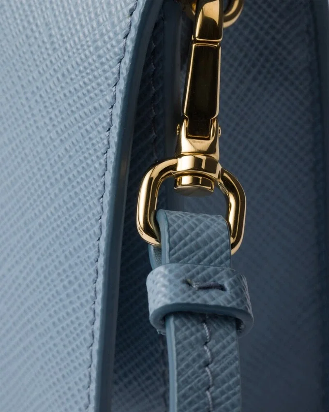 Saffiano Leather, an Emblematic Material of Prada Collections, Stands out for Its Crosshatch Pattern with Waxed Finish That Gives Each Design Versatile, Elegant Charm. This Mini-Bag Has a Sleek Yet Refined Geometric Shape, Illuminated by the Metal Hardware and Decorated with the Iconic Enameled Metal Triangle Logo.