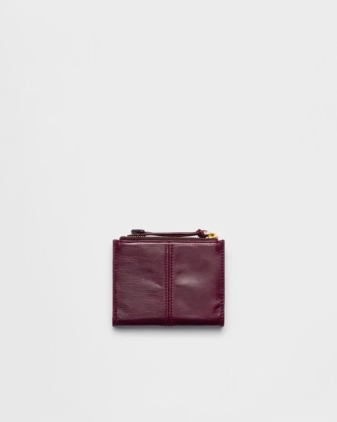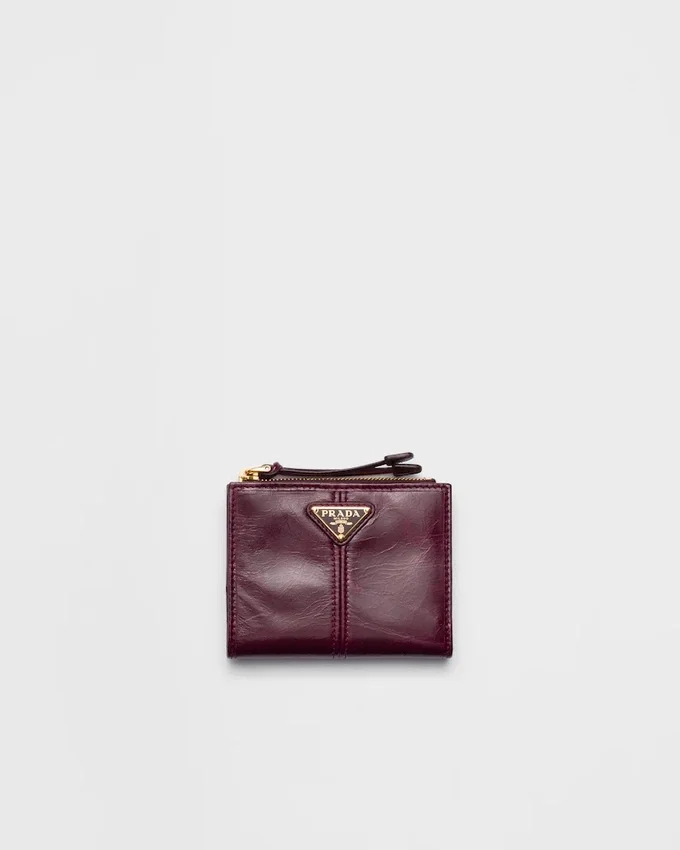 The Elegance of Leather and the Iconic Touch of the Enamelled Metal Triangle Logo Adorn This Refined Small Wallet. The Combination of Internal Compartments and Functional Details Completes the Design.