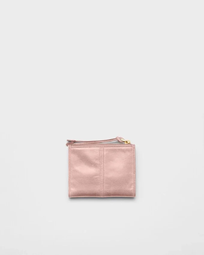 The Elegance of Leather and the Iconic Touch of the Enamelled Metal Triangle Logo Adorn This Refined Small Wallet. The Combination of Internal Compartments and Functional Details Completes the Design.