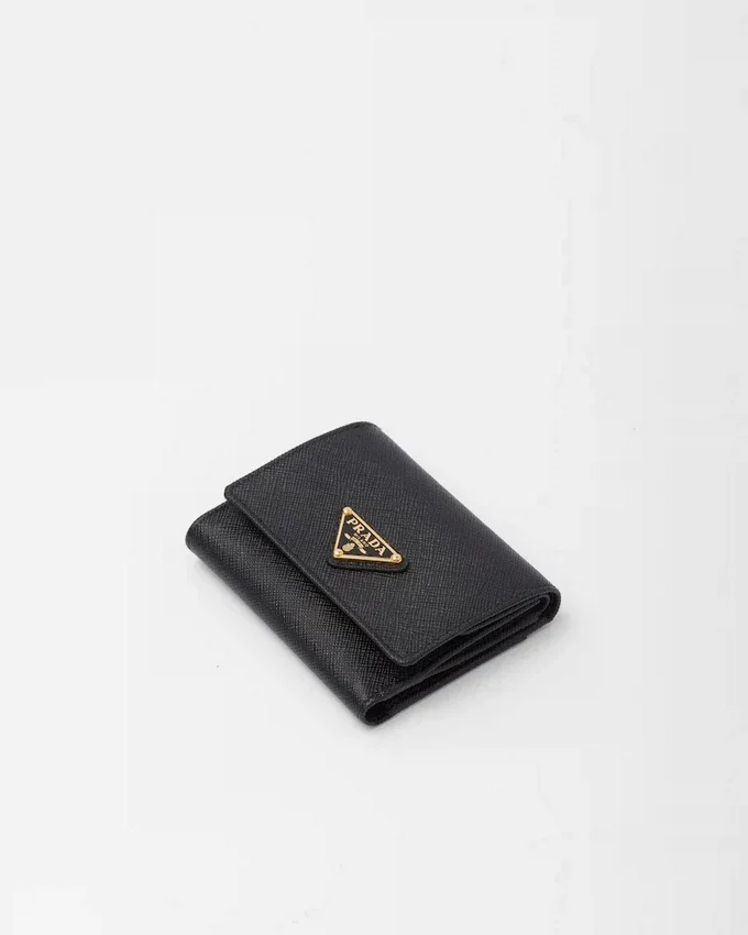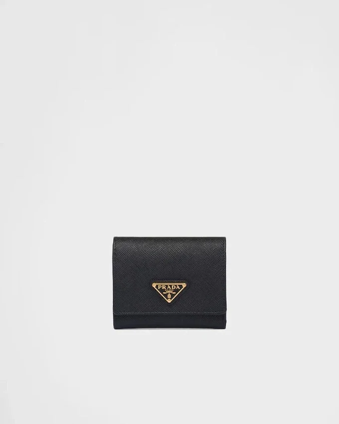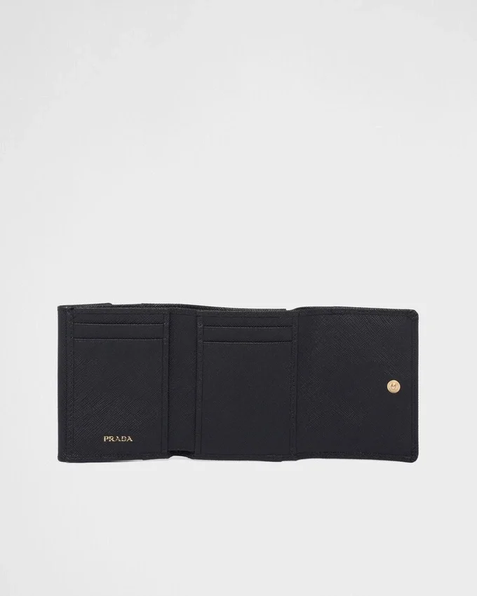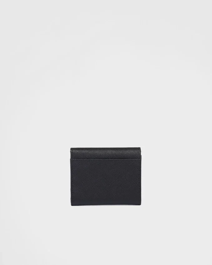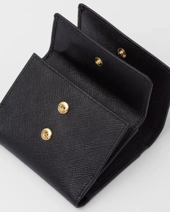 This Small Wallet Made of Saffiano Leather Has Several Internal Pockets and Card Slots. The Accessory with Snap Closure is Decorated with the Metal Lettering Logo.