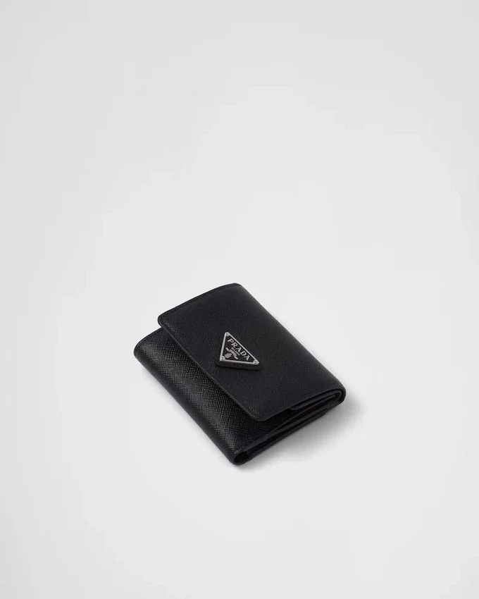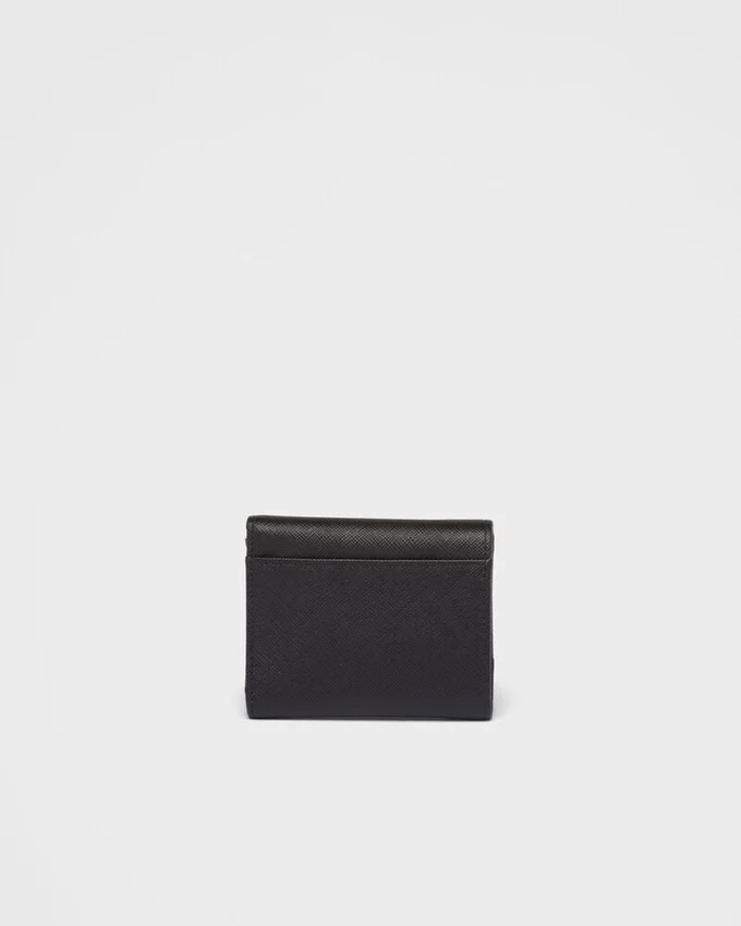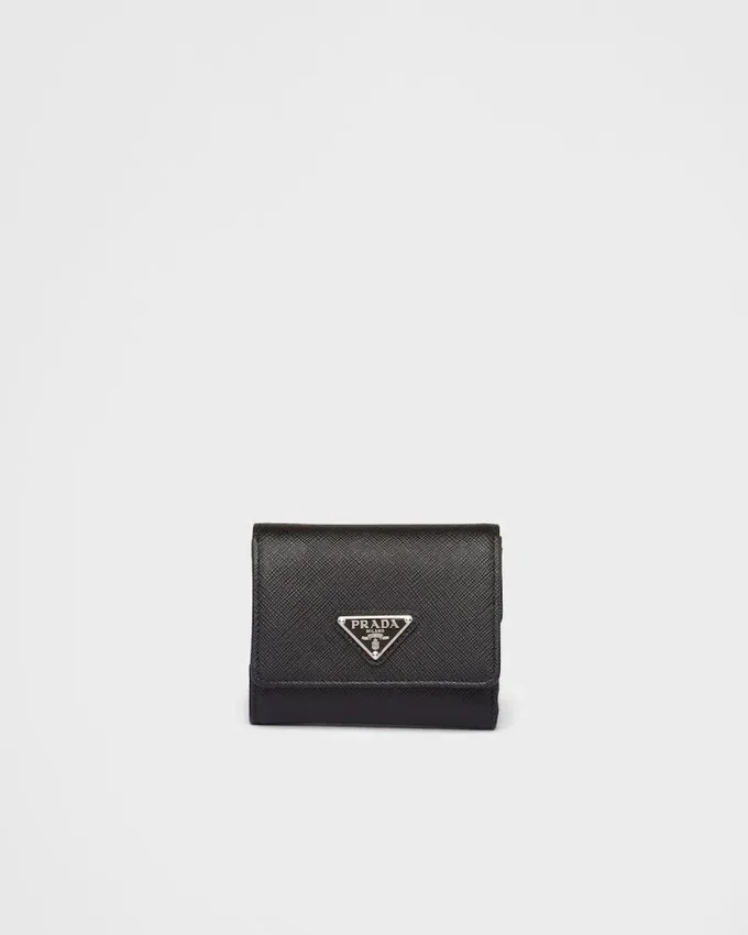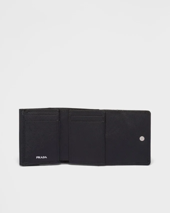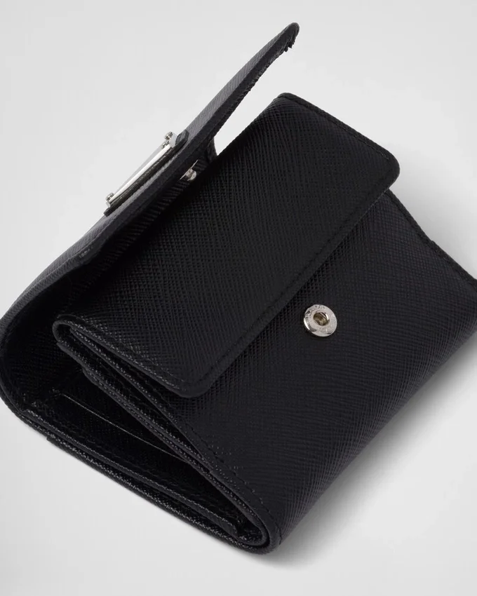 This Small Wallet Made of Saffiano Leather Has Several Internal Pockets and Card Slots. The Accessory with Snap Closure is Decorated with the Metal Lettering Logo.