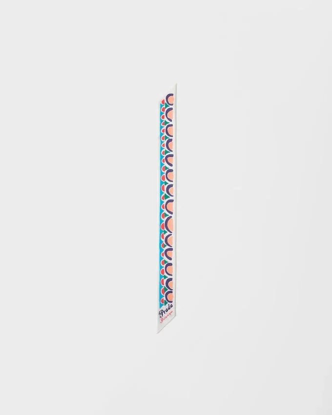 Prada’s Always Recognizable Logo with Timeless Charm Decorates This Silk Twill Skinny Scarf, Adding an Iconic Note to Its Design.