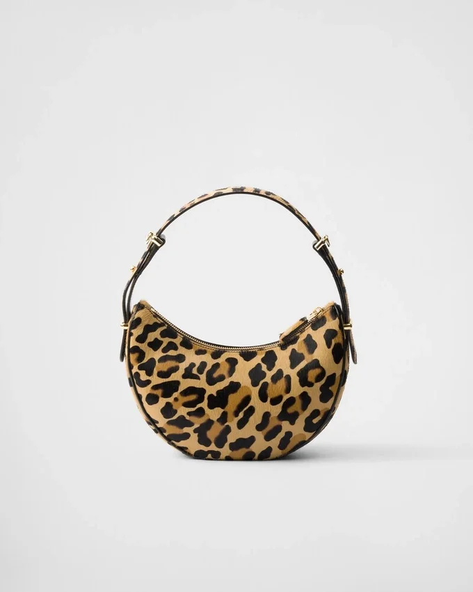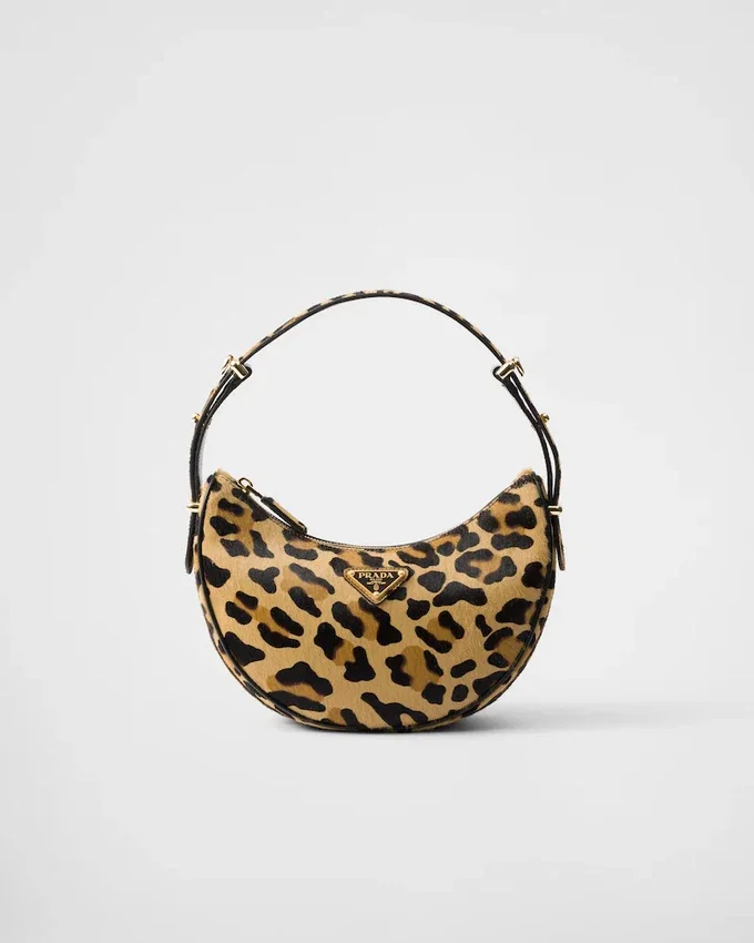 The Prada Arqua Bag is Reinterpreted with a Leopard Print That Adds Character to the Hobo Silhouette with Versatile, Modernist Allure.