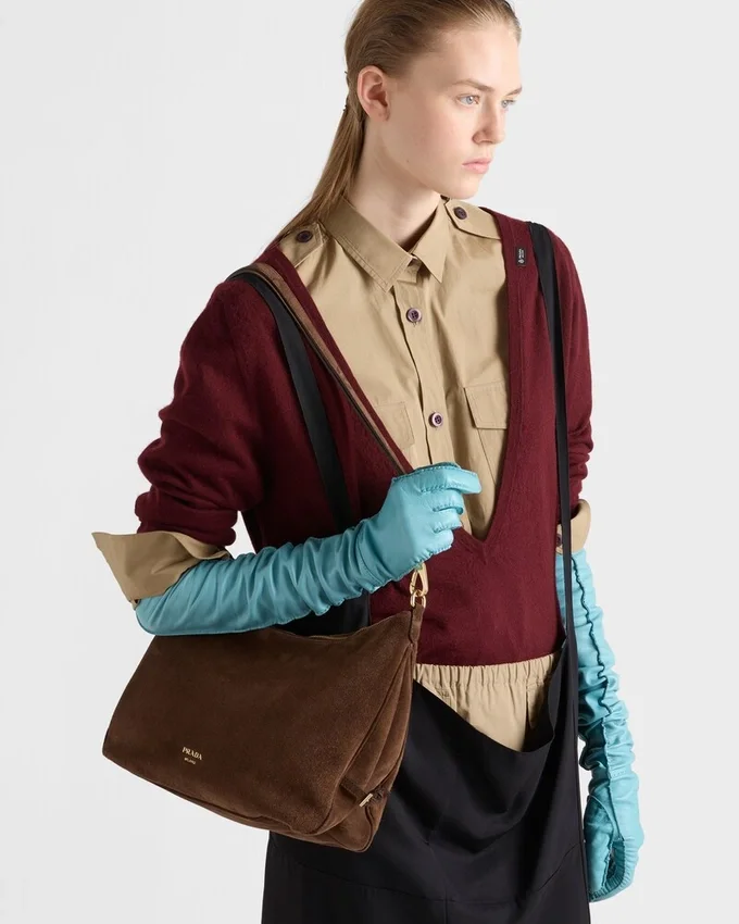 With a Fluid Yet Architectural Form, This Bag Made of Soft Suede Embodies a Balance of Contrasts: Tactile and Natural, but Shaped with Absolute Precision.