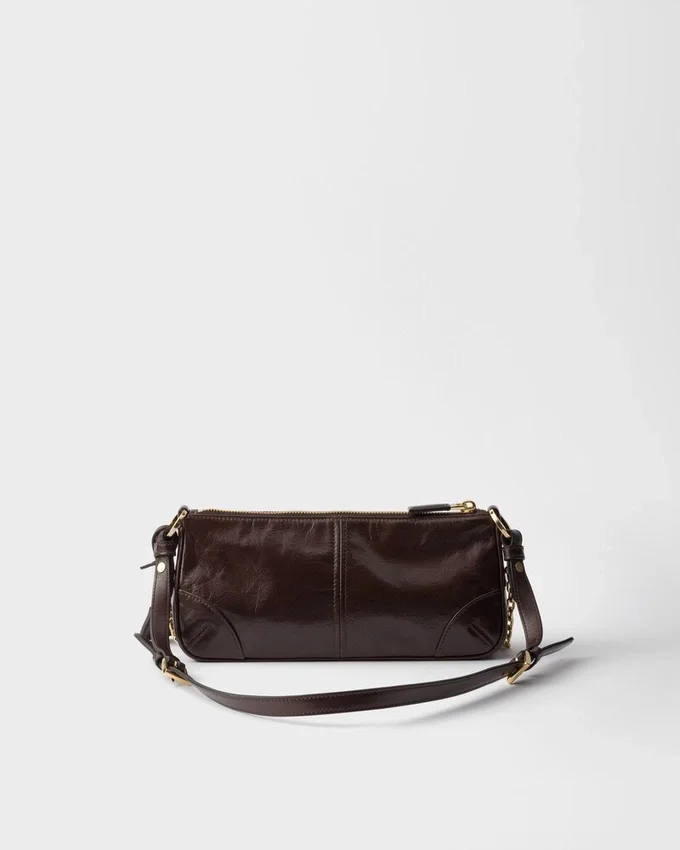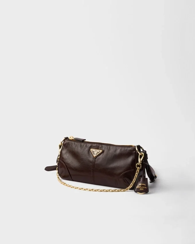 The Re-Edition of an Iconic Style from 2002, This Shoulder Bag Summarizes Prada’s Codes in a Versatile and Refined Silhouette That Establishes a Dialogue Between the Stylistic Language of Past and Present. Made of Leather with a Refined Shiny Finish, the Sophisticated, Minimalist Accessory Can Be Worn from Day to Night, Thanks to the Elegant Removable Chain Handle. Brightened by Metal Hardware, the Design is Completed by the Leather Keychain and Enameled Metal Triangle Logo.