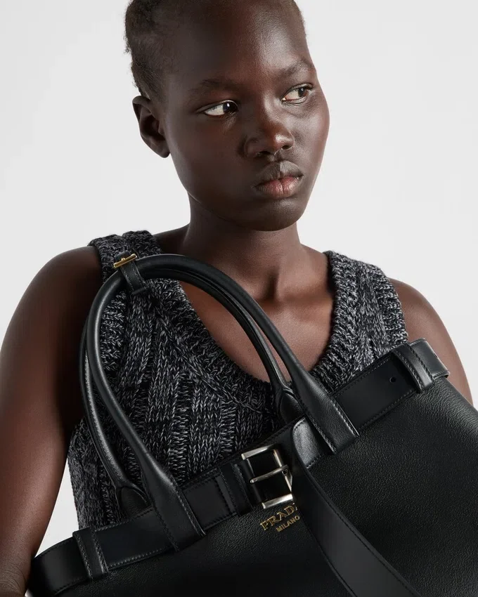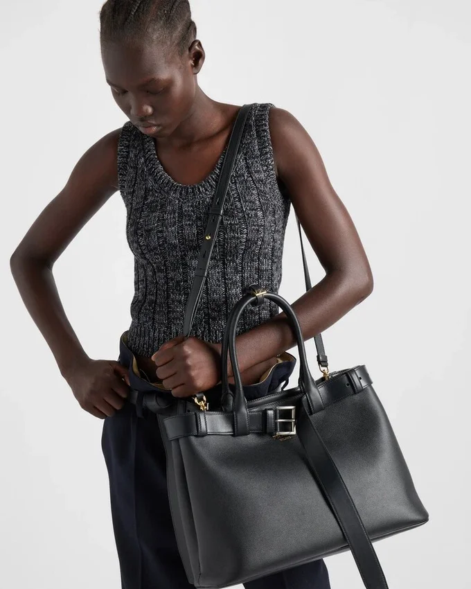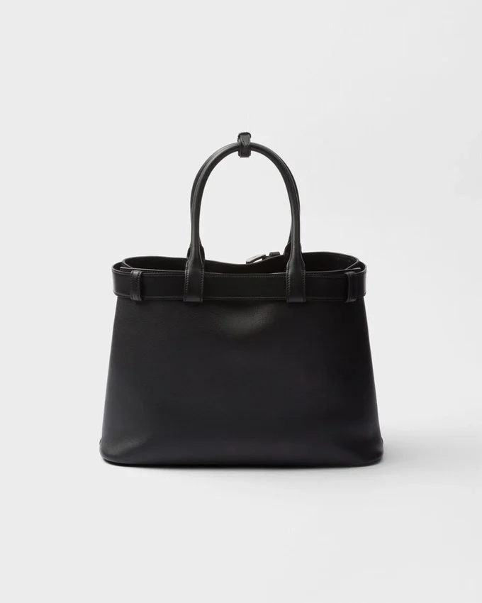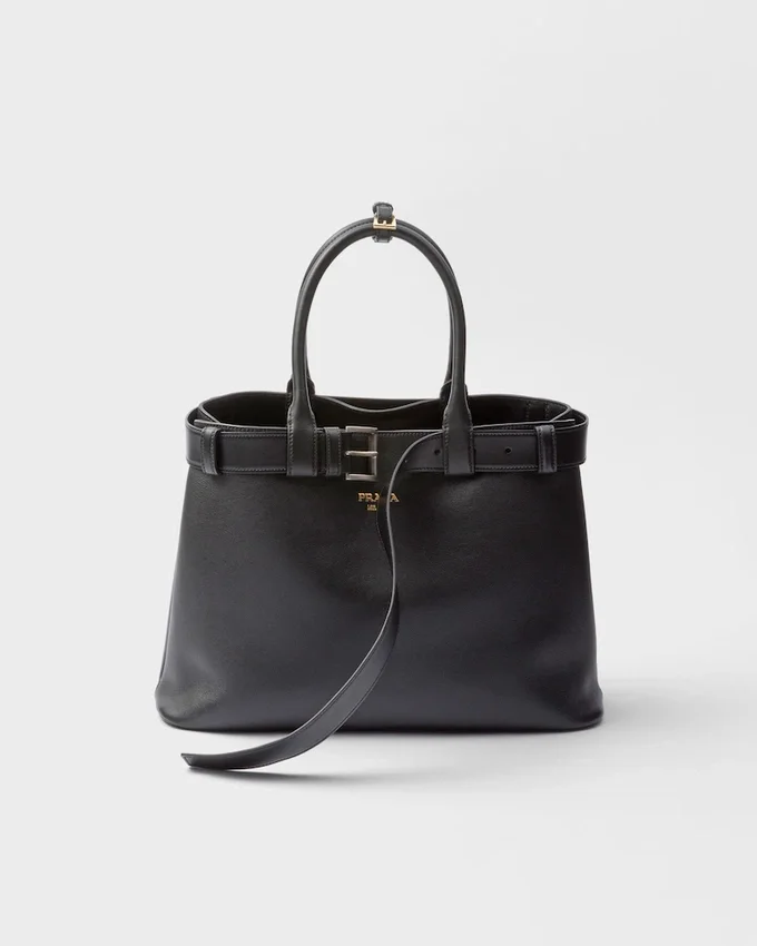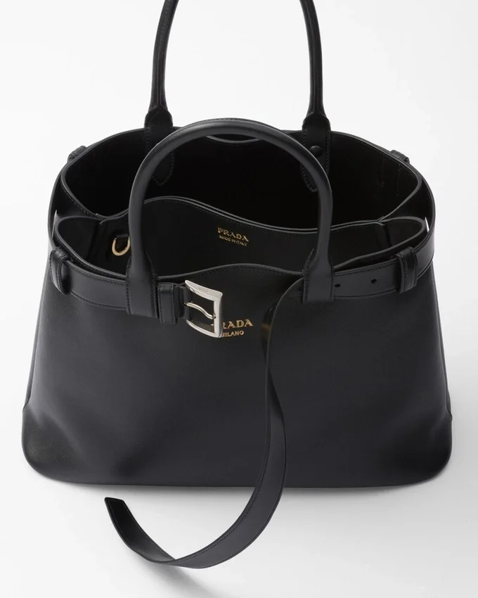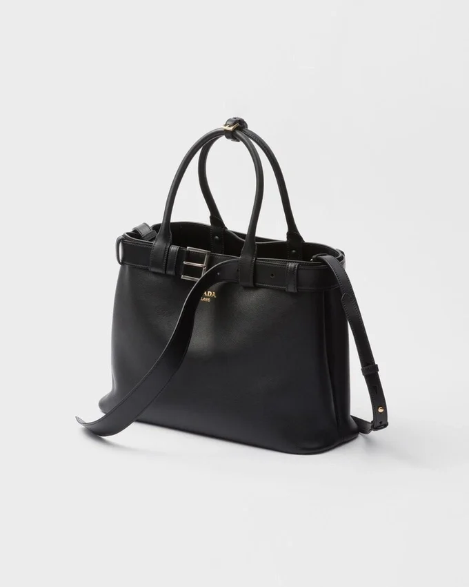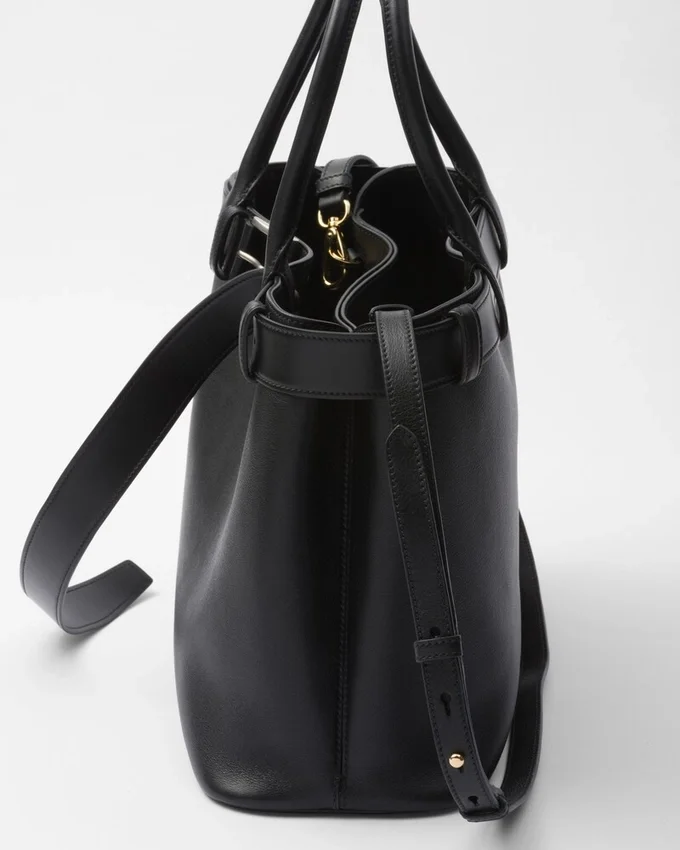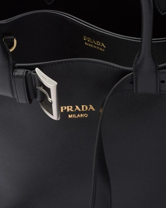 Clean Lines and Refined Elements Express Prada’s Dual Aesthetic That Moves Between Simplicity and Detail, Functionality and Elegance. This Leather Bag with Nappa Interior Summarizes the Stylistic Codes of the Brand in a Pragmatic Yet Sophisticated Design. The Roomy Silhouette is Characterized by a Multifaceted Soul, Expressed by the Interchangeable Belt That Enriches the Accessory with a Unique and Contemporary Touch. The Lettering Logo, Embossed in 22 Karat Gold Leaf, Decorates the Modern, Versatile Style.