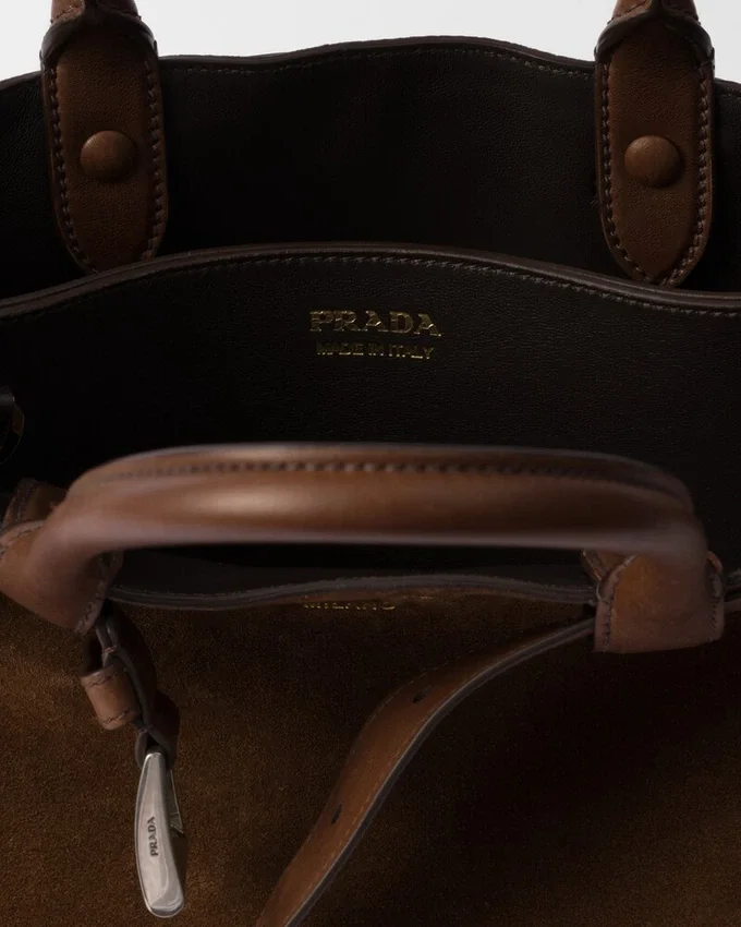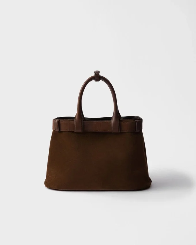 The Prada Buckle Bag Reveals Iconic Elements of the Brand Broken Down and Reassembled to Create New Shapes and Functions That Are Open to Multiple Interpretations. The Suede Accessory is Made Unique by the Belt Detail with the Iconic Buckle That Accents the Top Edge and Allows a Variety of Customizations.