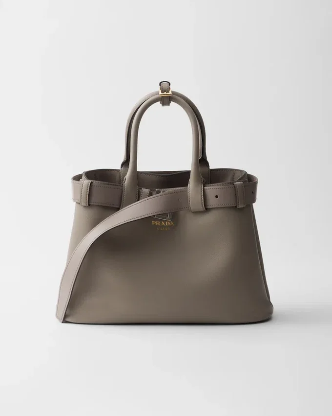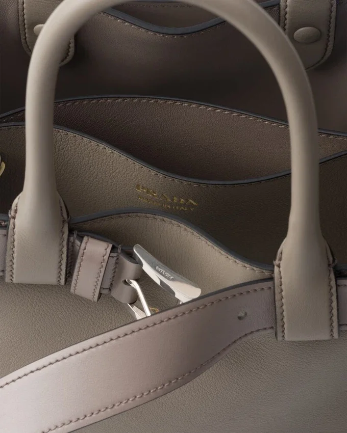 Clean Lines and Refined Elements Tell the Story of Prada’s Dual Aesthetic That Moves Between Simplicity and Detail, Functionality and Elegance. This Leather Bag with Nappa Interior Summarizes the Stylistic Codes of the Brand in a Pragmatic Yet Sophisticated Design. The Silhouette is Characterized by a Multifaceted Soul, Expressed by the Interchangeable Belt That Enriches the Accessory with a Unique and Contemporary Touch. The Lettering Logo, Embossed in 22 Karat Gold Leaf, Decorates the Modern, Versatile Style.