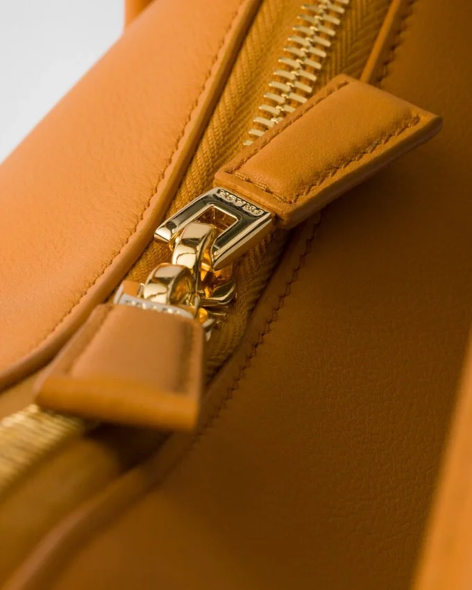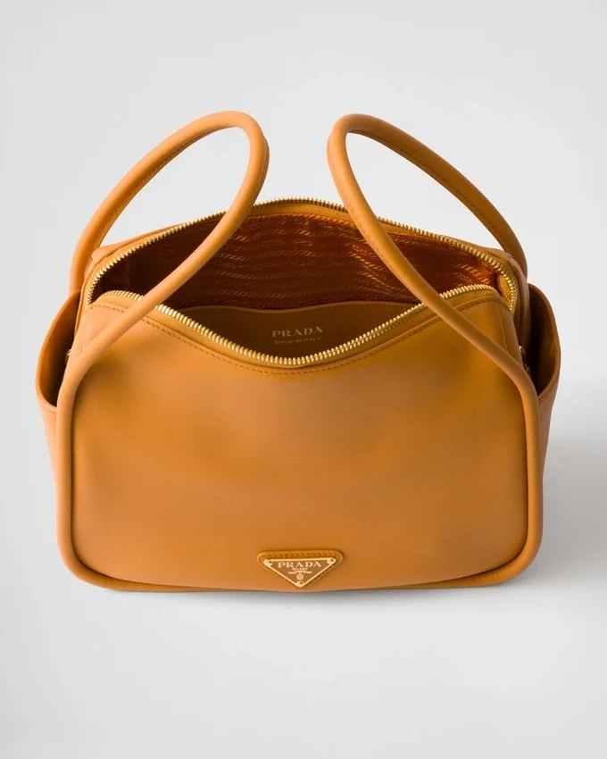 A Contemporary Design with a Casual Attitude Defines This Handbag with Refined Details Illuminated by Metal Hardware. The Compact and Versatile Style Features Clean, Minimalist Lines Emphasized by the Buttery Touch of Soft Grain Leather. The Accessory, an Expression of Exceptional Artisanal Know-How, is Decorated with the Enameled Metal Triangle Logo.