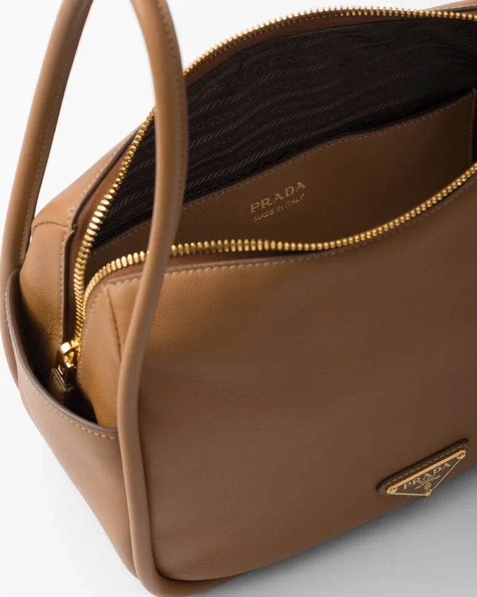 A Contemporary Design with a Casual Attitude Defines This Handbag with Refined Details Illuminated by Metal Hardware. The Compact and Versatile Style Features Clean, Minimalist Lines Emphasized by the Buttery Touch of Soft Grain Leather. The Accessory, an Expression of Exceptional Artisanal Know-How, is Decorated with the Enameled Metal Triangle Logo.