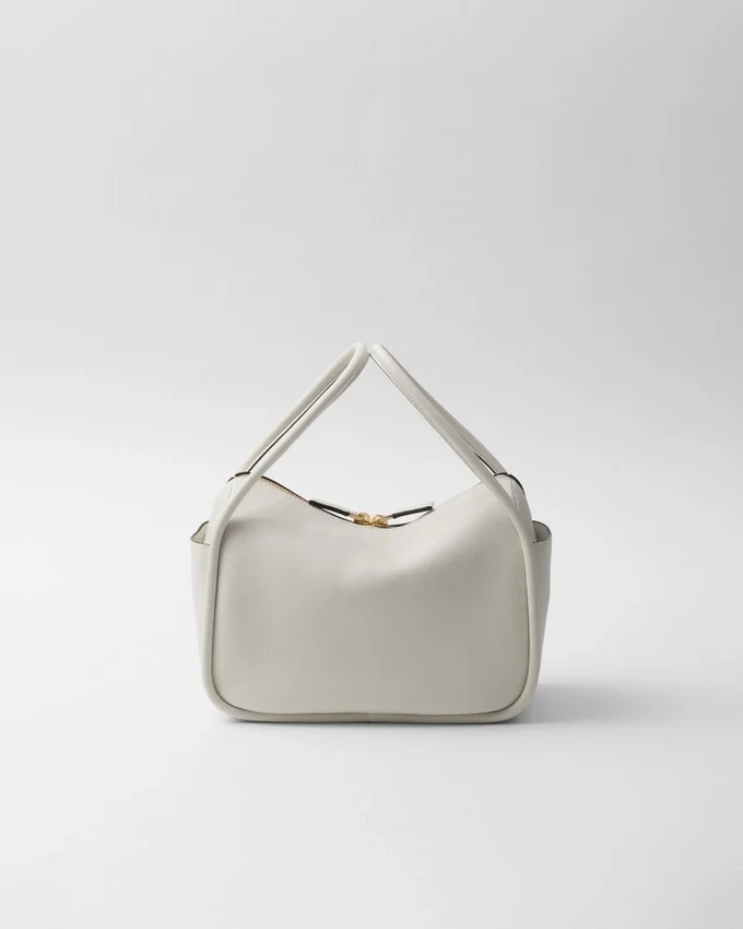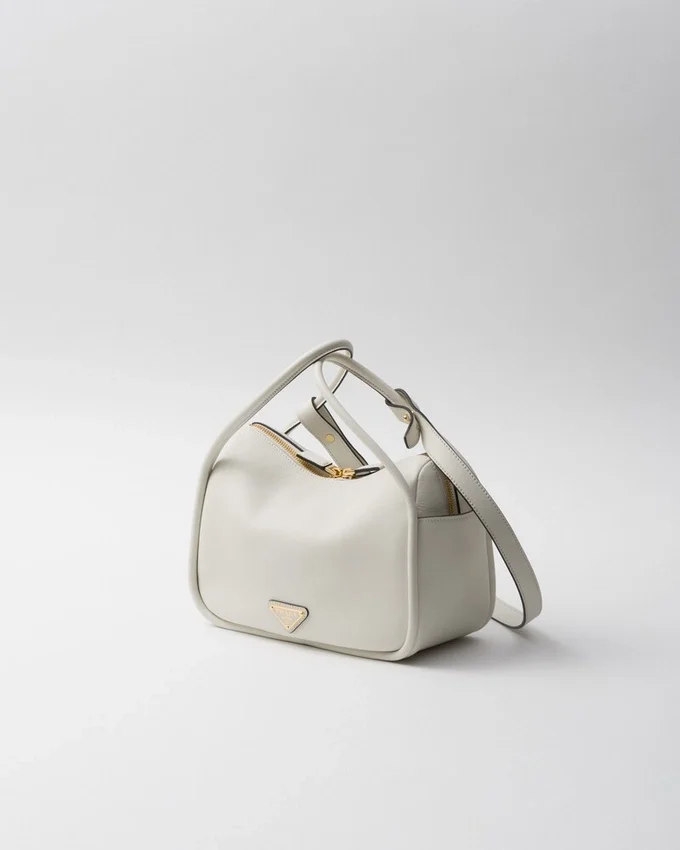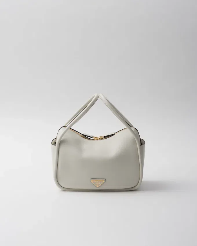 A Contemporary Design with a Casual Attitude Defines This Handbag with Refined Details Illuminated by Metal Hardware. The Compact and Versatile Style Features Clean, Minimalist Lines Emphasized by the Buttery Touch of Soft Grain Leather. The Accessory, an Expression of Exceptional Artisanal Know-How, is Decorated with the Enameled Metal Triangle Logo.