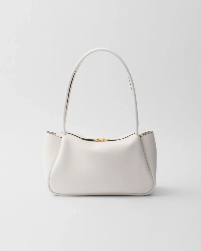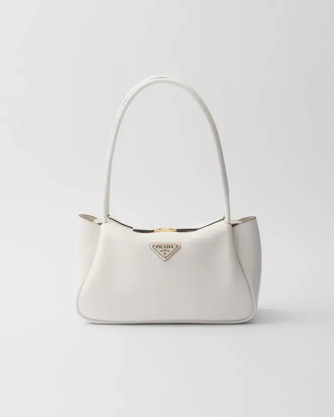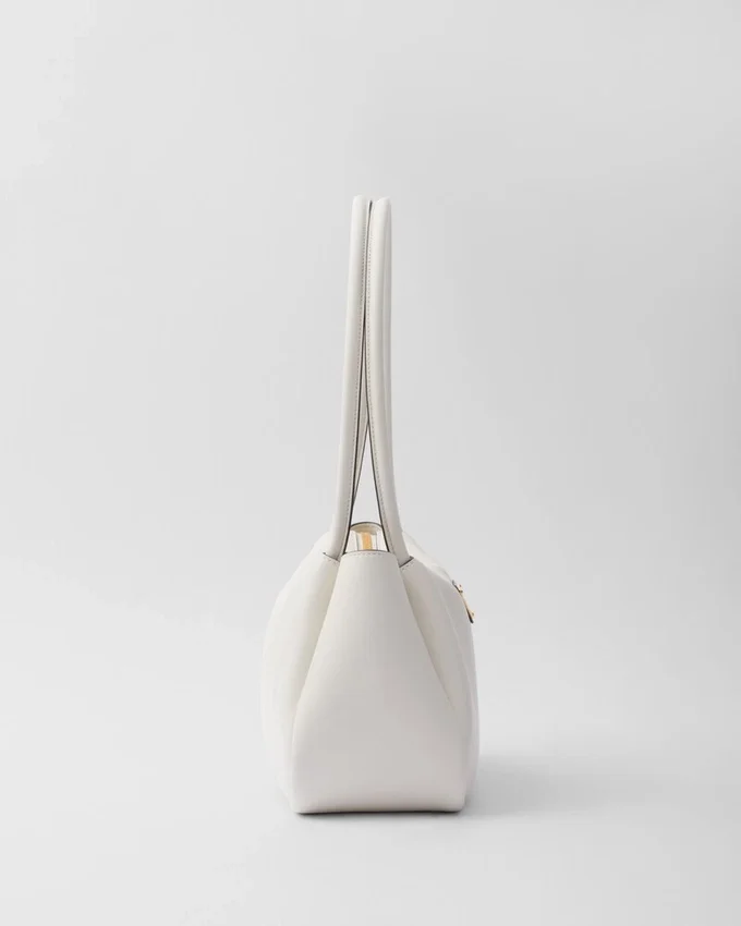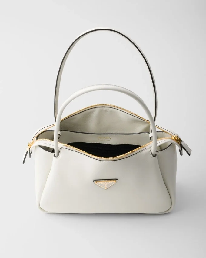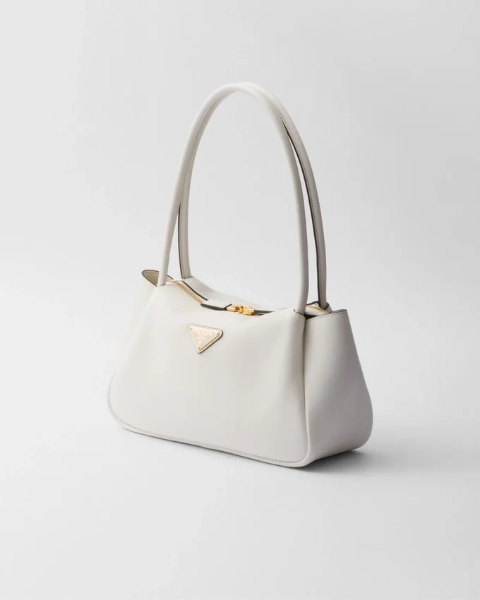 This Bag with a Sophisticated, Contemporary Design Features Simple Yet Refined Details, Brightened by the Metal Hardware. The Versatile Style Has Sleek, Minimalist Lines Emphasized by the Buttery Feel of Soft Grain Leather. The Accessory, an Expression of Exceptional Artisanal Know-How, is Decorated with the Iconic Enameled Metal Triangle Logo.