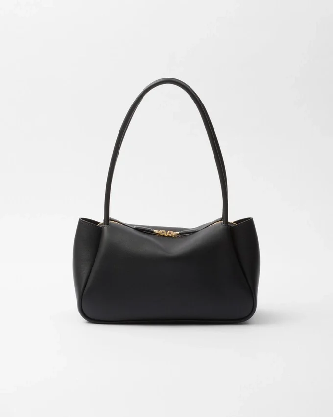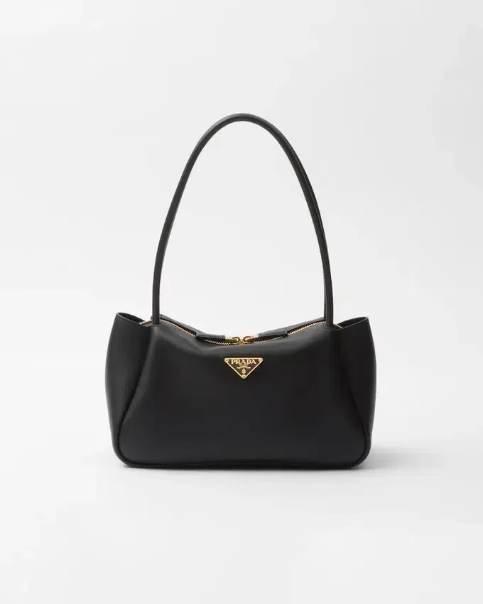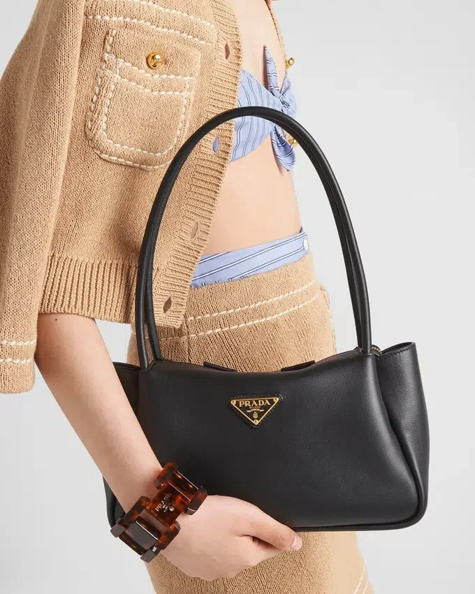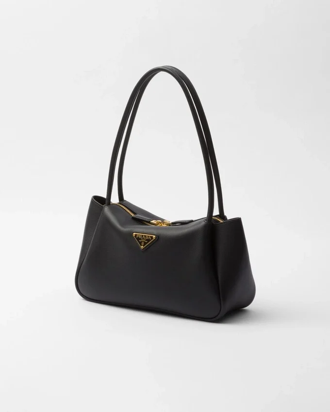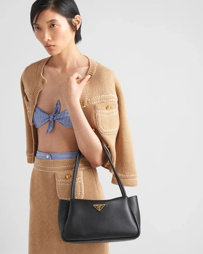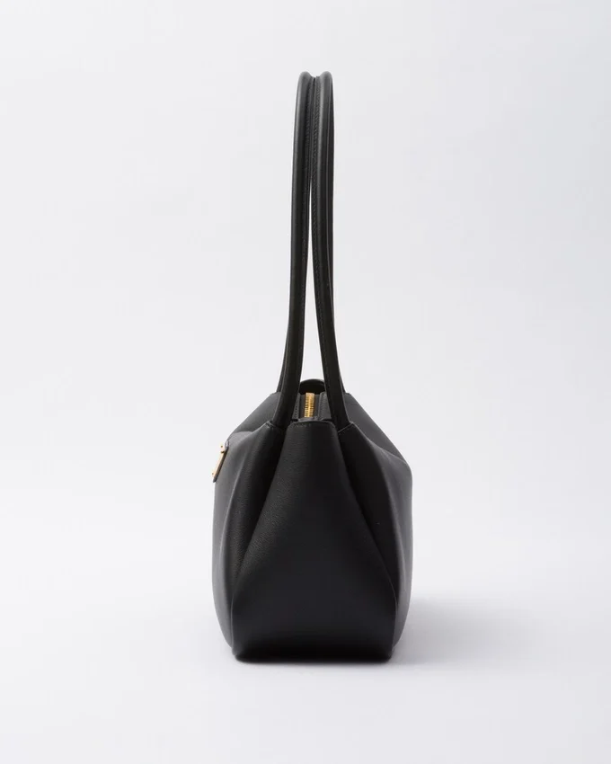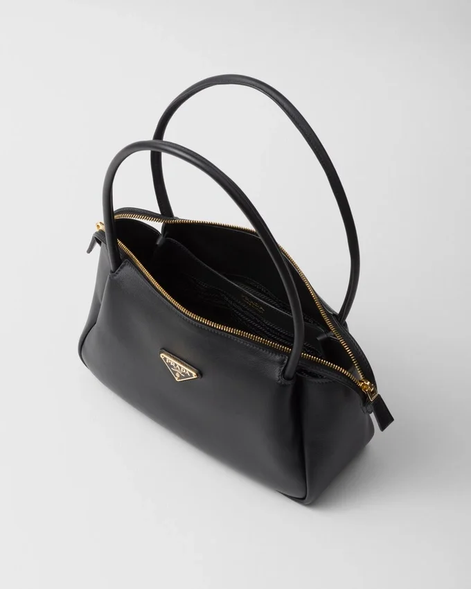 This Bag with a Sophisticated, Contemporary Design Features Simple Yet Refined Details, Brightened by the Metal Hardware. The Versatile Style Has Sleek, Minimalist Lines Emphasized by the Buttery Feel of Soft Grain Leather. The Accessory, an Expression of Exceptional Artisanal Know-How, is Decorated with the Iconic Enameled Metal Triangle Logo.