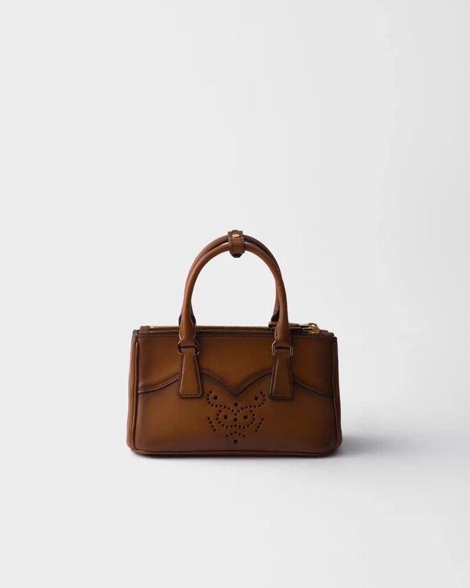 The Prada Galleria Bag is Reinterpreted with a Hybrid Language That Combines a Sophisticated Silhouette with the Bold Codes of Western Style. Presented in a Refined Mini Format, the Accessory is Made of Shaded Leather and Decorated with a Yoke Overlay and Perforated Motif. Constantly Rediscovered with New Materials and Refined Craftsmanship, the Icon Reveals Its Multifaceted and Timeless Essence.