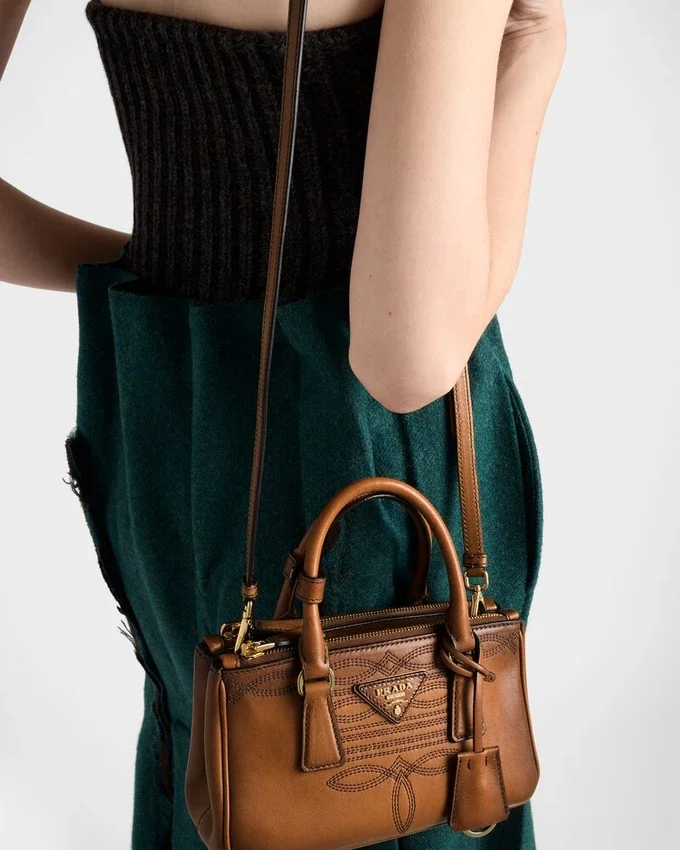 Balancing Tradition and Modernity, the Design of This Prada Galleria Bag Echoes the Distinctive, Bold Aesthetic of Texan Cowboy Boots. The Style Made of Shaded Leather is Enriched with Decorative Western-Style Stitching That Contrasts with the Refined Silhouette. The Constantly Reinterpreted Icon Reveals Its Multifaceted and Timeless Essence.