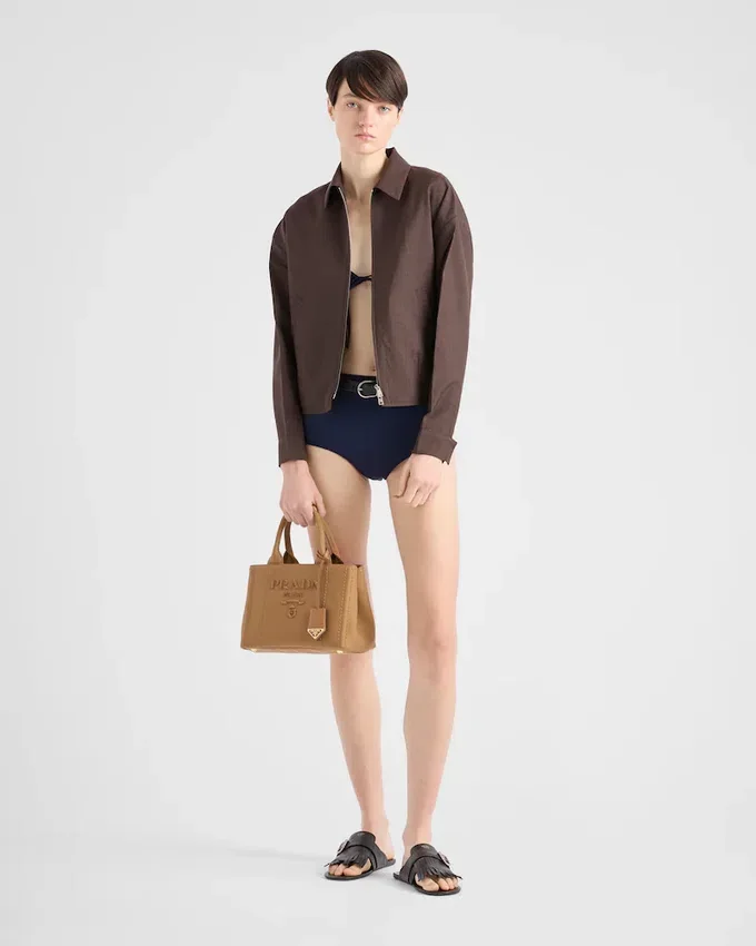 With Its Refined and Modern Design, This Canvas Handbag Combines Style and Practicality. The Compact Design Features a Shoulder Strap for Versatile Wear, While the Embroidered Front Logo and Leather Details Add a Touch of Sophistication.