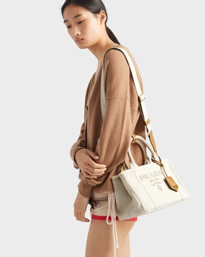 Prada Jardiniare Small Linen Blend Handbag