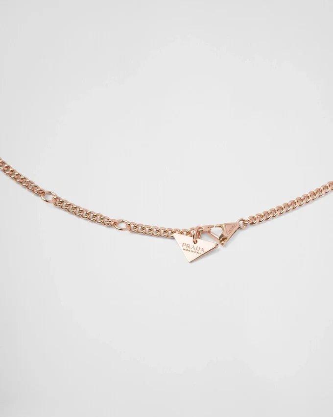The Triangle, Prada’s Signature Element, is Reimagined for the Fine Jewelry Collection. First Introduced in 1913 as a Hallmark on Mario Prada’s Steamer Trunks, It Stands out Now on This Necklace with a Sophisticated, Minimalist Design. This Piece, Characterized by a Clasp That Recalls the Emblematic Geometric Shape, is Made of Recycled Yellow Gold.