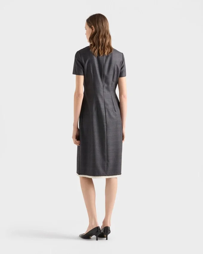 The Sheath Silhouette Meets a Print with Rigorous Allure. The Lace Hem Adds Contrast, Making the Look Surprising and Refined. The Dress Celebrates Femininity Through a Precise Shape.