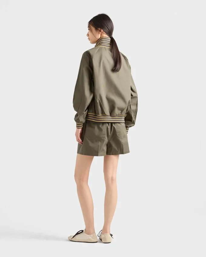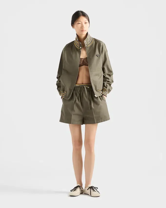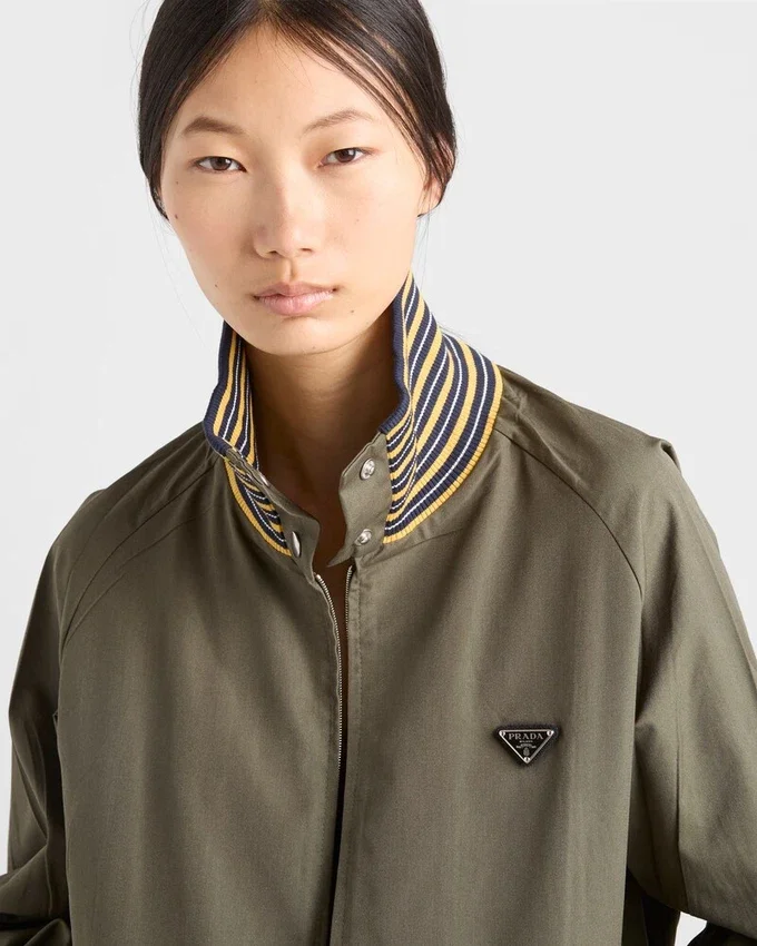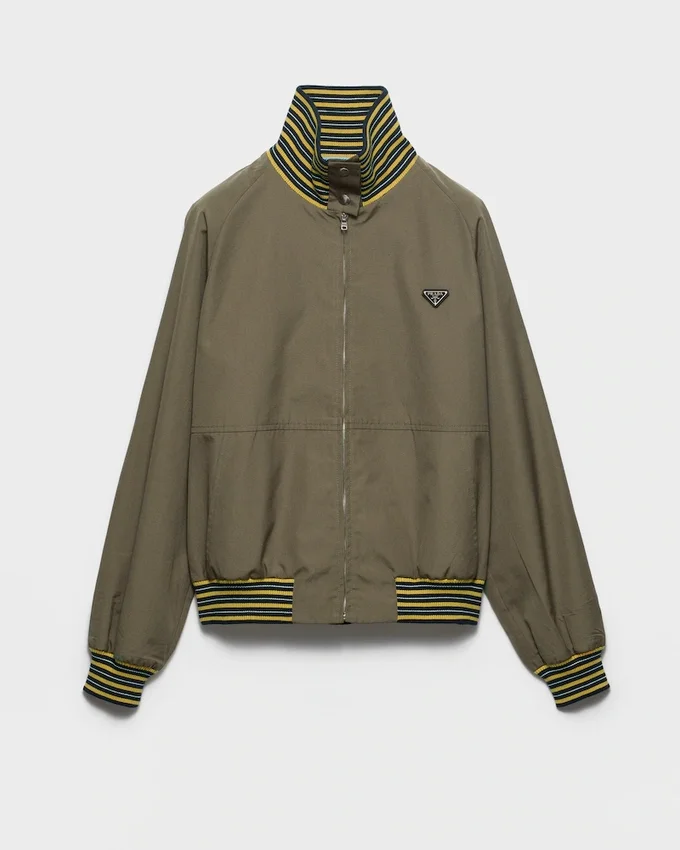 The Play of Contrasts Between Light Poplin and Textured Knit Gives This Jacket a Multifaceted Sartorial Soul. The Garment is Decorated with the Distinctive Triangle Logo.