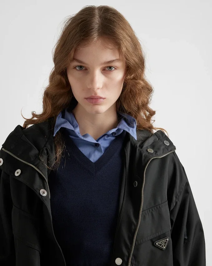 Re-Nylon Enhances the Versatile Character of This Sporty Blouson Jacket. The Hooded Garment Characterized by Functional Details is Decorated with the Enameled Metal Triangle Logo. For Sustainable Product Care and to Preserve Its Characteristics and Reduce the Dispersion of Microfibers, Avoid Frequent Washing, Air out the Garment After Each Use, and Have It Dry Cleaned by a Specialized, Ecological Dry Cleaner.