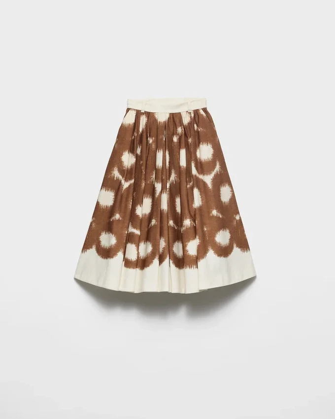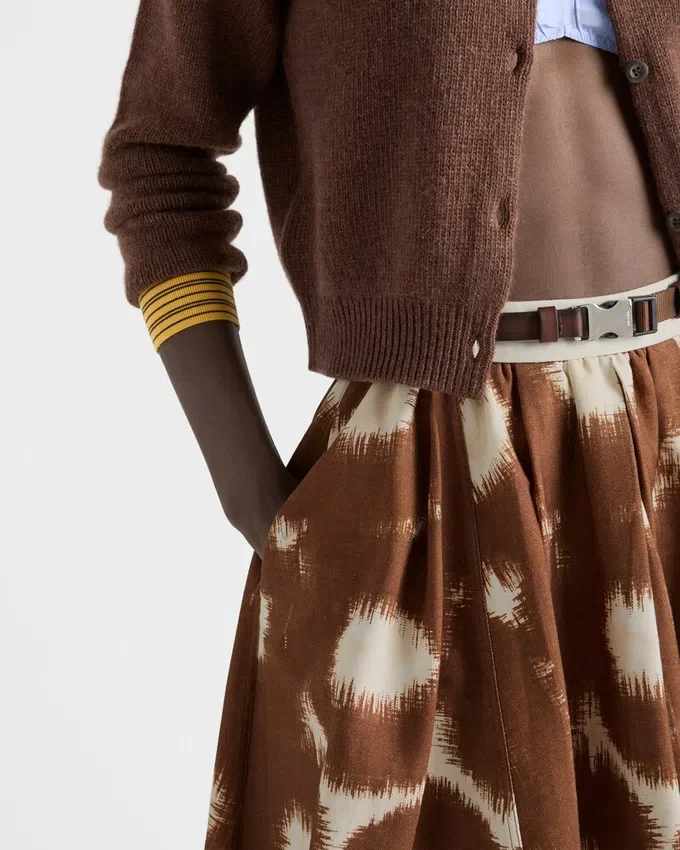Pragmatic Elegance and Abstract Motifs Create a Harmonious Dialog According to the Prada Vocabulary. This Pleated Skirt, an Iconic Style of Prada Collections, Plays with Refined Details and New Aesthetic Proposals.