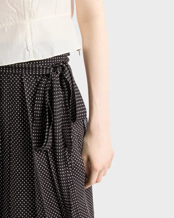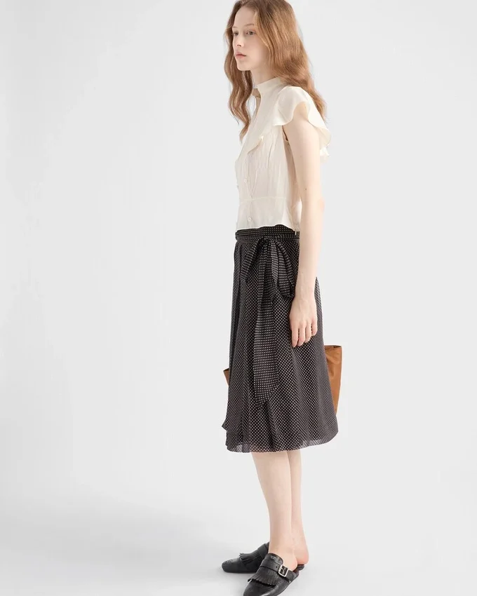Sophisticated Lines and Details with Vintage Charm Define This Printed Chiffon Skirt. The Wrap Style is Enriched with Pleating on the Front That Adds Movement to the Silhouette.