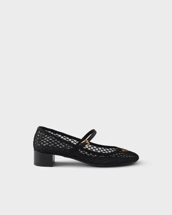 These Ballerinas with a Feminine Silhouette and Iconic Details Embody Refined, Timeless Style. The Shoes, Reinterpreted with a Mesh Fabric, Acquire a Unique, Delicate Charm.